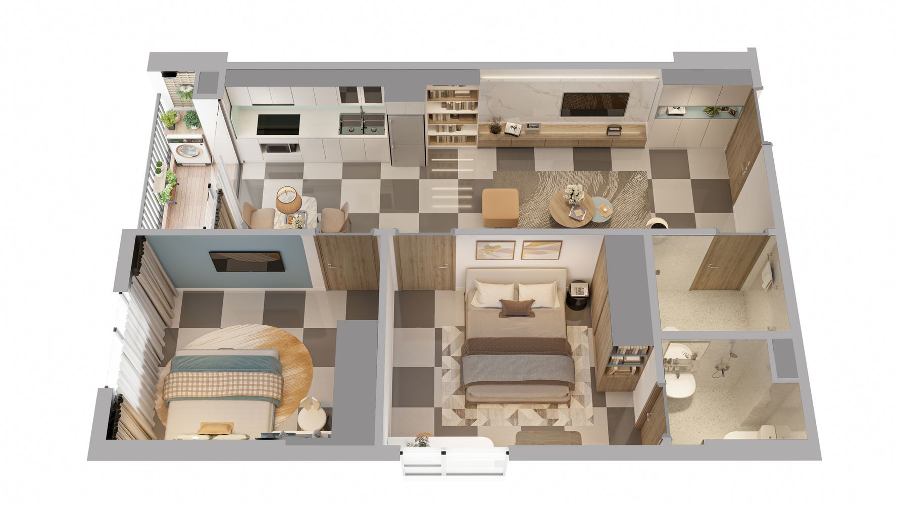 Căn hộ 2 phòng ngủ, 2 vệ sinh 62,5m² Đang cập nhật